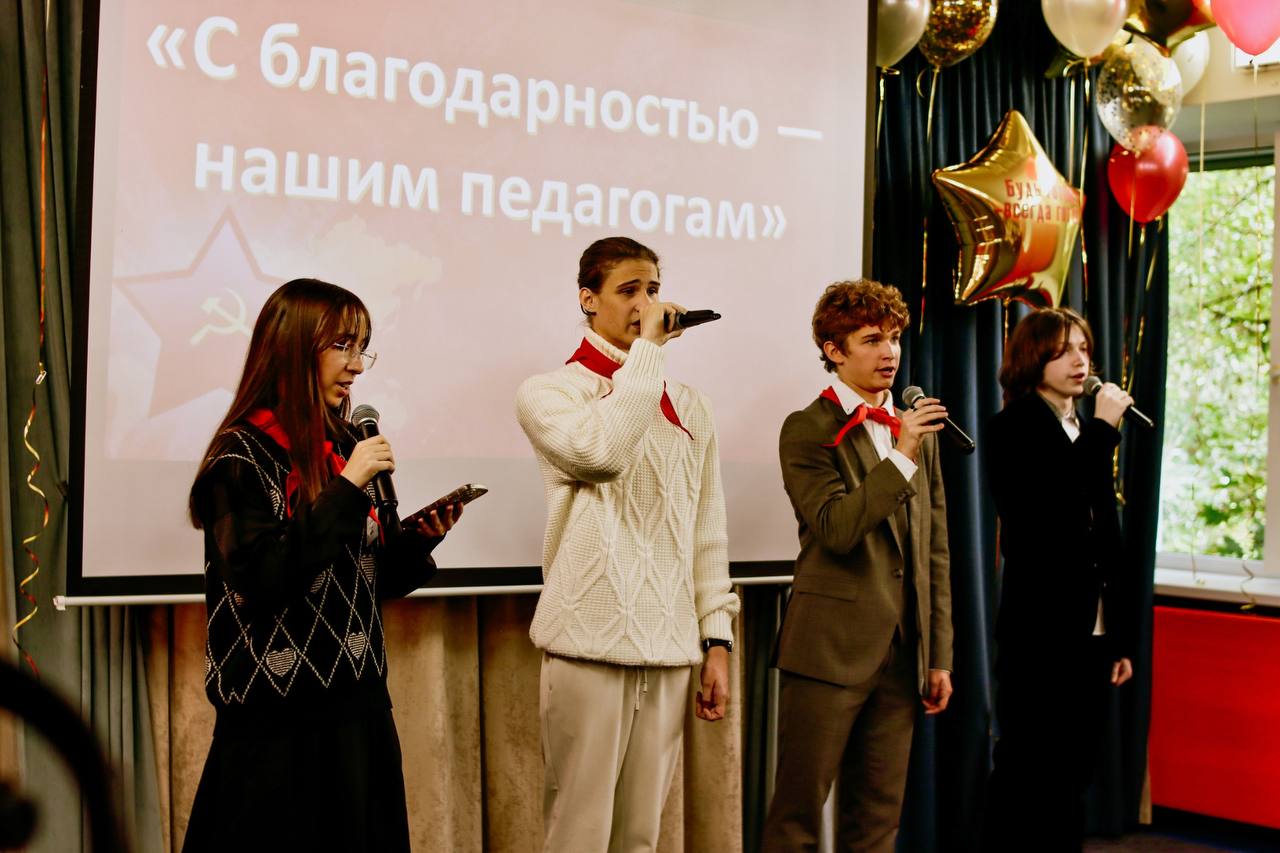 В завершение праздника звучали тёплые поздравления в исполнении талантливых учеников. Яркие песни, зажигательные танцы, смешные сценки и искренние слова благодарности — всё это объединило нас в радостной дружеской атмосфере.