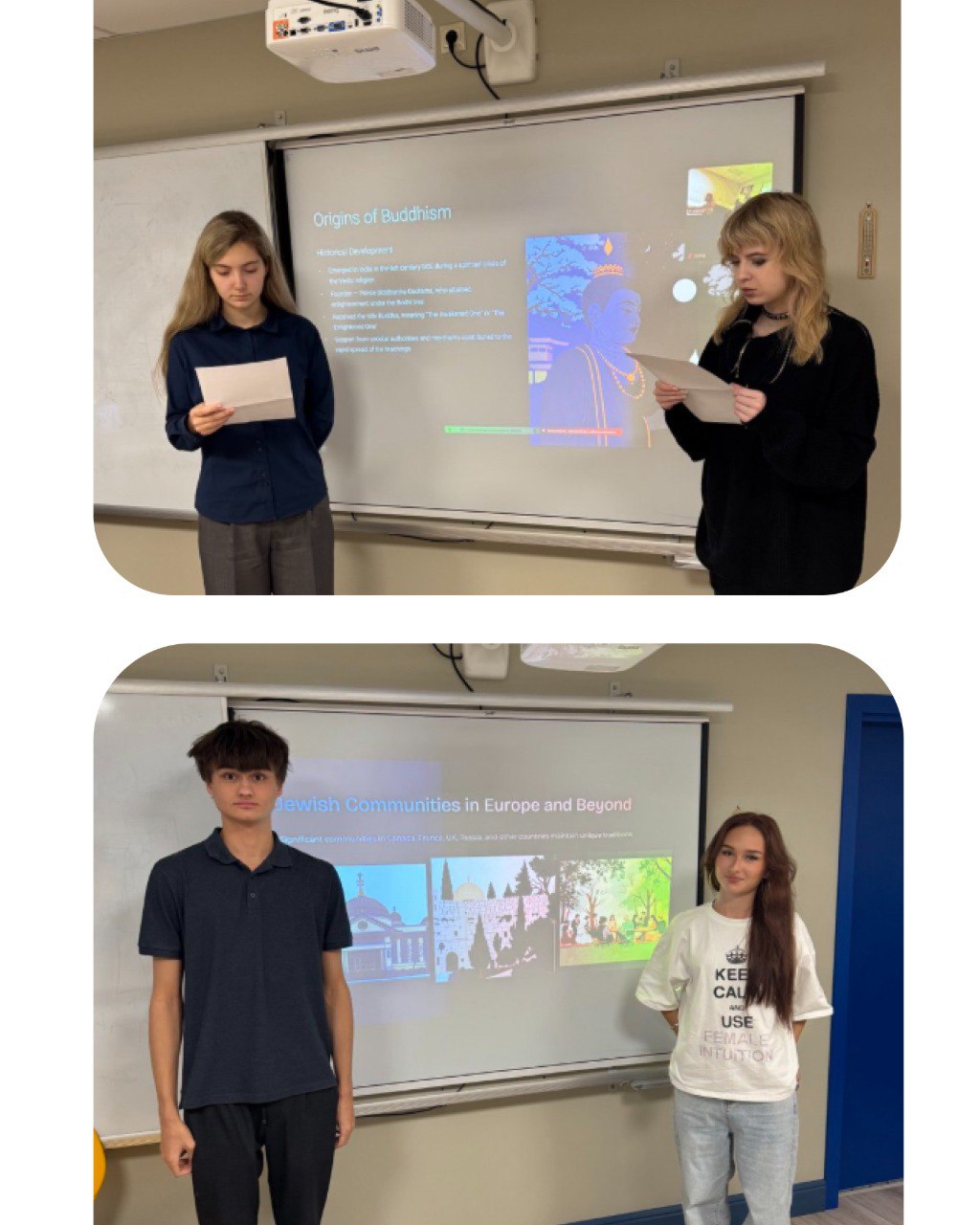 Учащиеся 10-х классов завершили изучение масштабного раздела, посвященного мировым религиям. Изучили исторические истоки и основы вероучения ведущих мировых религий, ознакомились с догматическими, культовыми и этическими особенностями каждой из религиозных традиций.